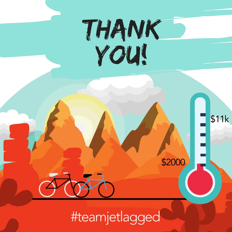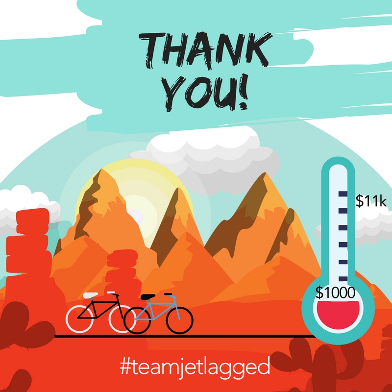 The biggest thanks goes to the generous individuals listed who donated in February! We have reached our first $1000 mark! Massive #TeamJetlagged hugs all around!